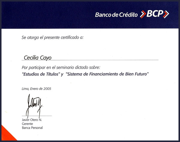 Me gradué en la Universidad del Pacifico con la Primera Promoción de ESPECIALISTA EN GESTION INMOBILAIRIA y donde obtuve el Grado Académico Universitario, para ejercer esta profesión, requisito que será indispensable, de acuerdo con la LEY DEL AGENTE INMOBILIARIO.